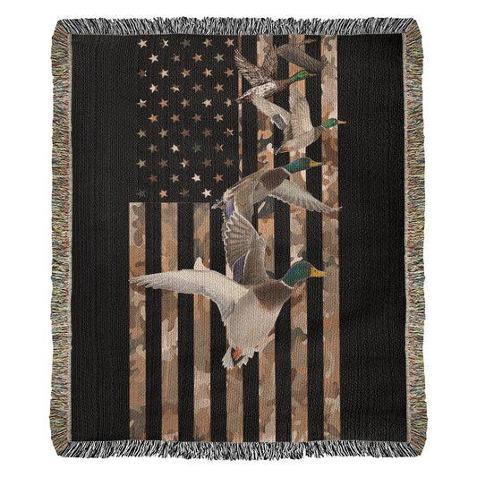 Patriotic Flock Duck Hunting Woven Blanket