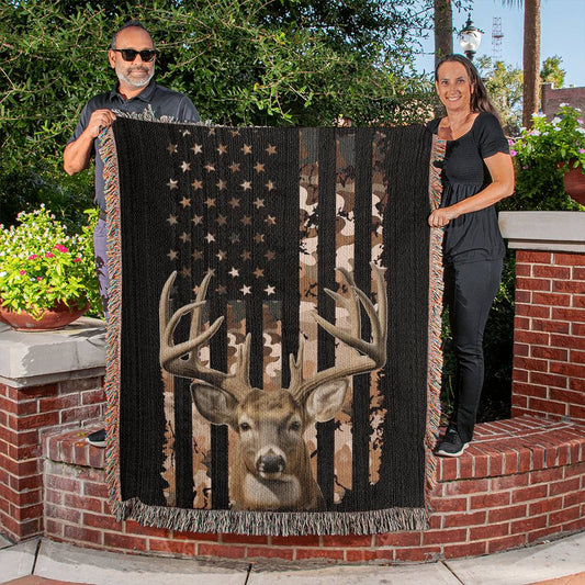 Patriotic Deer Hunting Woven Blanket